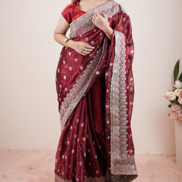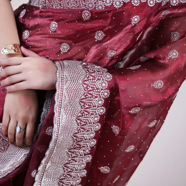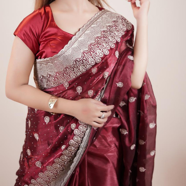 ✨ Draped in this stunning maroon saree with silver zari work — a timeless symbol of elegance and cultural pride. 💫